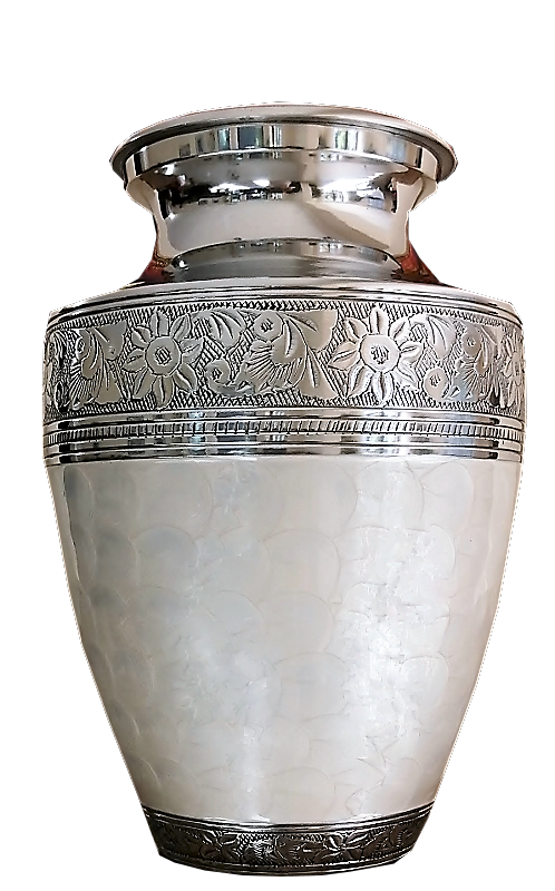 ręcznie wykonana urna z aluminium zamykana od góry na gwint;